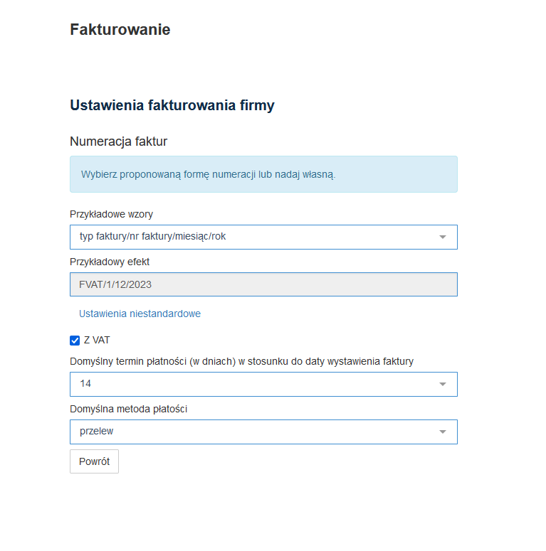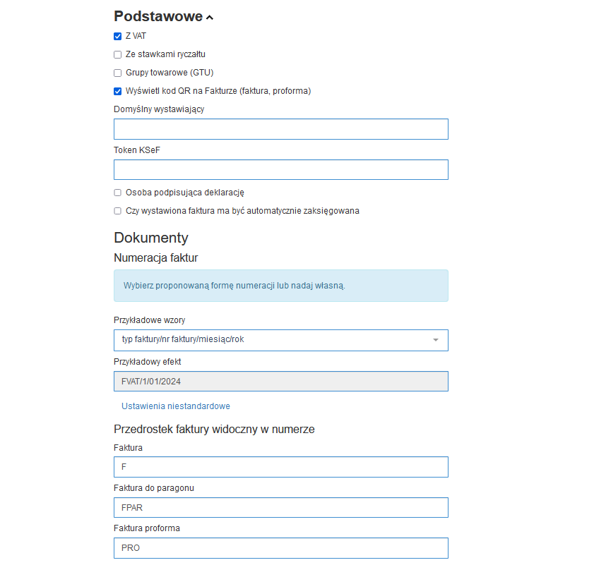 - Numerację Faktur