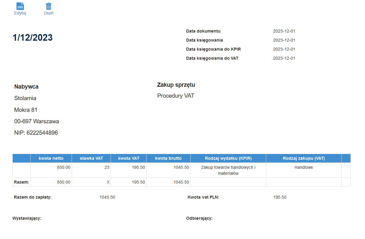 Wystawienie faktury VAT