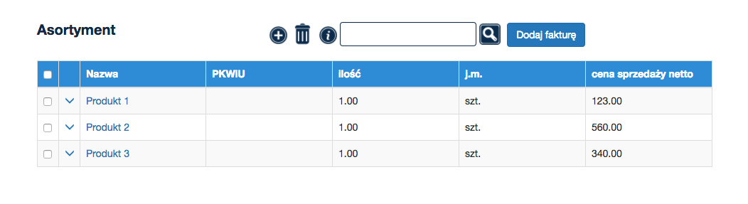 W prosty sposób możesz dodać produkt / usługę, które znajdą się w słowniku. Produkt / usługę przywołasz w momencie wystawiania faktury.